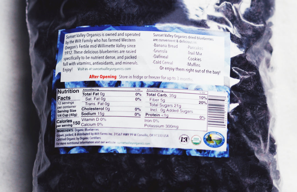 It takes approximately 7 lbs of fresh blueberries to make 1 lb of Sunset Valley Organics' dried berries.